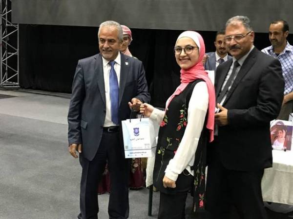 جفرا نيوز - في لفته إيجابية تدل على دور القطاع الخاص في دعم المجتمع المدني قامت جامعة عمان الأهلية ومركز جابر العثرات بتكريم أوائل الثانوية العامة على مستوى محافظة البلقاء، يوم الأربعاء الموافق ٧/٨/٢٠١٩في مجمع الأرينا الثقافي، حيث كرم رئيس جامعة عمان الأهلية ا.د. ساري حمدان ومدير مركز جابر العثرات د. علي أبو رمان المتفوقين بمنحهم هدايا قيمة من الجامعة بالإضافة لصورة للطلبة الأوائل مرسومة على الحجر مقدمة من مركز جابر العثرات.