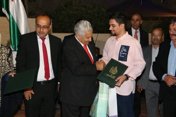 فيما تقدم الزميل أسامة الراميني، ناشر مجلة "نيفرتيتي" بالشكر الجزيل من دولة رئيس الوزراء الاسبق د. عبدالله النسور وقدم له باسم أسرة تحرير المجلة، الجهة المنظمة للحفل، وباسم الطلبة الأوائل وأولياء أمورهم، وباسم كافة المدعوين والحضور، سيفاً تذكارياً وتم تسليم الدروع والجوائز والهدايا التذكاريةللطلبة الاوائل