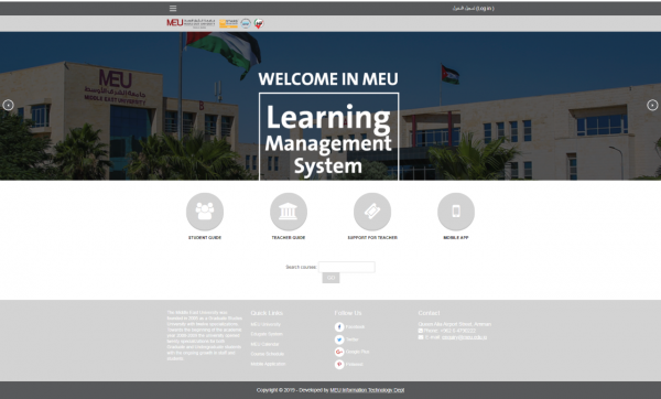 جفرا نيوز - أطلقت دائرة تكنولوجيا المعلومات قسم التعلم الالكتروني في جامعة الشرق الأوسط واجهة جديدة لنظام التعليم الالكترونيlearning-E ://elearning.meu.edu.jo/http