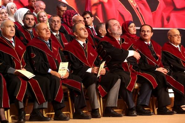 وتم بث حفل التخريج، الذي حضره رئيس هيئة المديرين، الدكتورة سناء شقوارة وأعضاء الهيئة وأعضاء مجلس الأمناء، ورئيس الجامعة الأستاذ الدكتور محمد الحيلة، و مواكب العلماء من الأساتذة عمداء الكليات، وأعضاء الهيئتين التدريسية والإدارية، وضيوف الجامعة من السفارات والملحقيات العربية والأجنبية، على الهواء مباشرة، حيث كان متاحا من خلال التعاون مع مركز استوديو ومختبرات الكرمل ودائرة تكنولوجيا المعلومات عبر الموقع الرسمي للجامعة، والصفحة الرسمية في فيسبوك واليوتيوب.