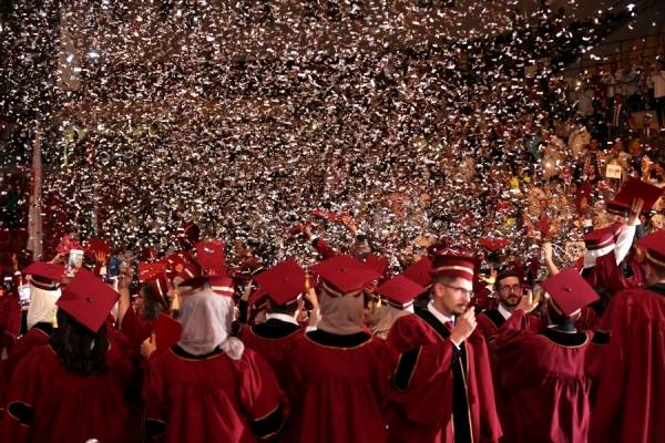 وتضمن الاحتفال، الذي اقيم في صالة الأمير حمزة بمدينة الحسين للشباب، عرضا لـ"فيديو" تحدث عن مسيرة الجامعة في دعم طلبتها، من خلال اعدادهم وتهيئتهم لسوق العمل والمراحل التالية للمرحلة الدراسية، مستعرضا مقابلات للعاملين في الجامعة ممن درسوا وتخرجوا منها، في لفتة لاقت اعجاب الجمهور وتفاعلهم، كما تم عرض "فيديو" استعرض أبرز نشاطات الجامعة وإنجازاتها اضافة للبرامج الأكاديمية والتخصصات التي تطرحها.