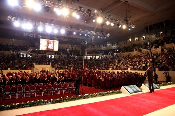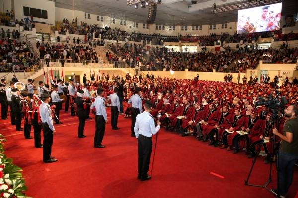 كما وهنأ الدكتور ناصر الدين، مخاطبا الخريجين وذويهم على اجتهادهم، واتمامهم دراستهم بنجاح وتميز، مشيرا أن جامعة الشرق الأوسط وفرت لهم فرص تلقي العلوم وفق أفضل معايير الجودة المحلية والعالمية، حاملة أمانة المسؤولية بالجدية والالتزام الأخلاقي، مضيفة على ذلك التأهيل والتدريب، والبحوث العلمية المفيدة، وسعة المعرفة والاستعداد لسوق العمل.