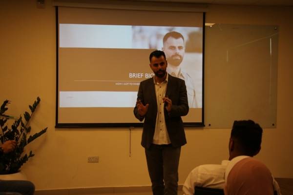 وتطرق المتحدث خلال المحاضرة، التي حضرها مدير مركز الابتكار وريادة الأعمال في الجامعة، الدكتور عبد الرحمن زريق، ومسؤولة التواصل الخارجي والتعليم في السفارة الأمريكية السيدة هيذر ديوجاردي، وعدد من أعضاء الهيئتين التدريسية والإدارية والطلبة، للحديث عن مسيرته المهنية، والتحديات التي واجهها عبر مشوار عمله.