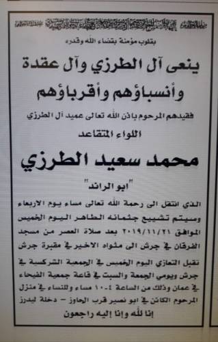 شكر لسمو الأمير طلال بن محمد وسمو الأميرة غيداء طلال على تعاز