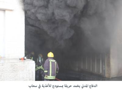 اخماد حريق بمستودع اغذية في سحاب