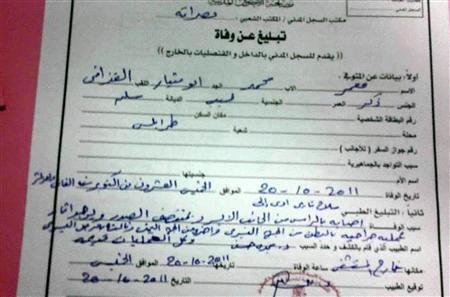 وتحت ضغوط من حلفاء غربيين وعد المجلس الوطني الانتقالي يوم الاثنين بالتحقيق في كيفية مقتل القذافي وابنه وذلك بعد أن أظهرت لقطات صورت بهاتف محمول الاثنين وهما على قيد الحياة بعد اعتقالهما. وشوهد الزعيم الليبي السابق وكان يسخر منه البعض وتعرض للضرب قبل اطلاق الرصاص عليه فيما قال المجلس الوطني الانتقالي انه كان تبادلا لاطلاق النار.