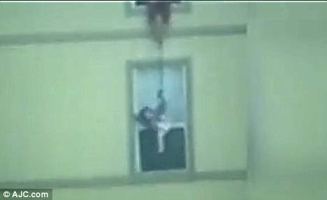 وبعد أن اطمأنت الأم على الرضيع ربطت طفلتها جايدين بحبل، ثم أنزلتها إلى الجيران الذين تلقفوها بأيديهم أيضًا.