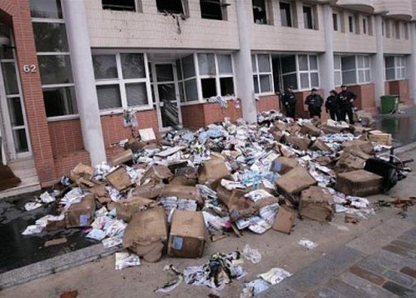 وقال طبيب الطوارئ باتريك بيلو إن الزجاجة الحارقة ألقيت على ما يبدو “على الواجهة وادت إلى اشتعال النيران في النظام المعلوماتي”. وقال بيلو “دمر كل شيء”.