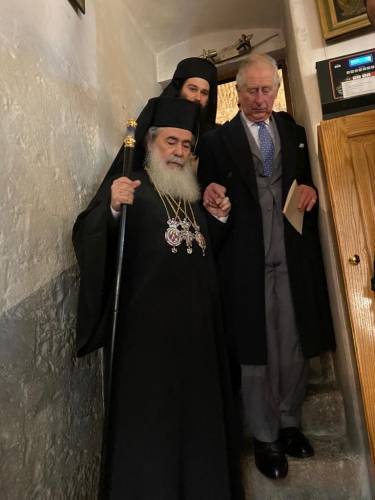 استقبل رؤساء كنائس الأراضي المقدسة اليوم صاحب السمو الملكي وولي العهد البريطاني الأمير تشارلز بكنيسة المهد في مدينة بيت لحم، كما رافقوه في جولة داخل الكنيسة وأطلعوه على أعمال الترميم الجارية فيها.