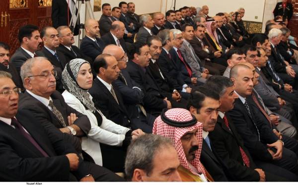 صاحب الجلالة ،،، إن الإصلاح السياسيّ أولوية في المرحلة الراهنة ، ومن أجل تحقيق ذلك قطع هذا الإصلاح شوطاً كبيراً في انجاز التعديلات الدستورية في صورتها القانونية، وانجاز قوانين الاجتماعات العامة والبلديات ونقابة المعلمين والتشريعات الناظمة للعمل الإعلامي وحرية الرأي والتعبير. وسوف يستمر العمل على انجاز البنية التشريعية التي تمهّد وتؤسس لتطوير العمل السياسي بإصدار قوانين الانتخابات، والأحزاب، والهيئة المستقلة للانتخابات، والمحكمــة الدستورية. ويتفق المجلس مع تأكيـــد جلالتكم على أن هذه التشريعات ليست نهائية، وإنما هي خطوة هامة لتأمين التطوّر الديمقراطي الايجابي والنوعي الذي يسهم في توسيع قاعدة المشاركة والتمثيل، وأن الهدف النهائي من الإصلاح السياسي هو الوصول إلى حكومات نيابية. وحتى تنضج بنية الأحزاب، ويكون لها وزن سياسي مؤثر في داخل البرلمان، لابدّ من تكريس مبدأ التشاور في تشكيــل الحكومات، ليكون المواطن مشاركاً في تشكيلها من خلال مجلس النــواب. وهذا ما أكّدتــم عليه جلالتكم، وهو أمر يحظى بتأييد كامل من مجلس الأعيان.