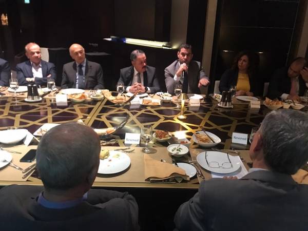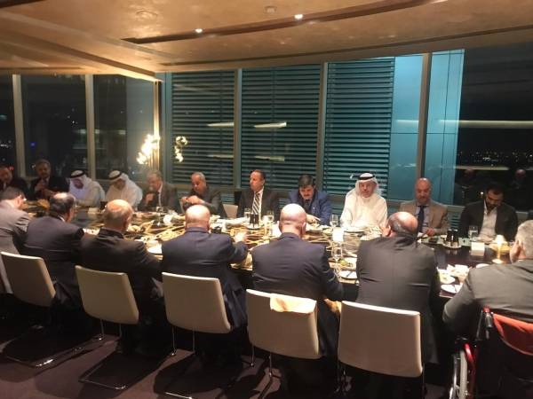 جفرا نيوز - أقام مجلس الاعمال الاردني في دبي والإمارات الشمالية لقاء عمل بحضور معالي الدكتور طارق الحموري وزير الصناعة و التجارة وسعادة السفير جمعة العبادي وسعادة القنصل العام بالانابة شفا العموش وسعادة المهندس فتحي الجغبير رئيس مجلس ادارة غرفة صناعة الأردن وعمان والسيد زاهر القطارنه مساعد الامين العام للشؤون الفنية مدير السياسات التجارية الخارجية والمستشار الاقتصادي بالسفارة السيد نادر السحيم ولفيف من كبار اصحاب المال والاعمال المقيمين في دولة الامارات العربية المتحدة، حيث رحب إحسان القطاونة رئيس مجلس الأعمال الأردني بمعالي الوزير والوفد المرافق له مشيداً بالمشاركة الاردنية في معرض الجلف فود والجودة العالية التي تتمتع بها الصناعات الغذائية و طالب القطاونة بدعم انشاء الشركات الصغيرة والمتوسطة في قطاعات محددة يحتاجها السوق الأردني وبما يضمن توفير فرص ومراجعة التسهيلات المالية والائتمانية والبنكية للأسواق الاستثمارية الكبرى وبما يمكن المستثمر الأردني من استقطاب وبناء شراكات مع مستثمرين أجانب داخل المملكة