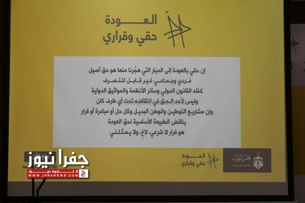 تحت رعاية دولة رئيس مجلس الاعيان فيصل الفايز أطلقت لجنة فلسطين النيابية برئاسة النائب المحامي يحيى السعود ، وبحضور عدد من الشخصيات النقابية والحزبية والشعبية بدار مجلس النواب ، اليوم الخميس ، حملة العودة "حقي وقراري"