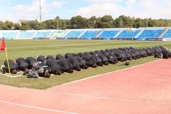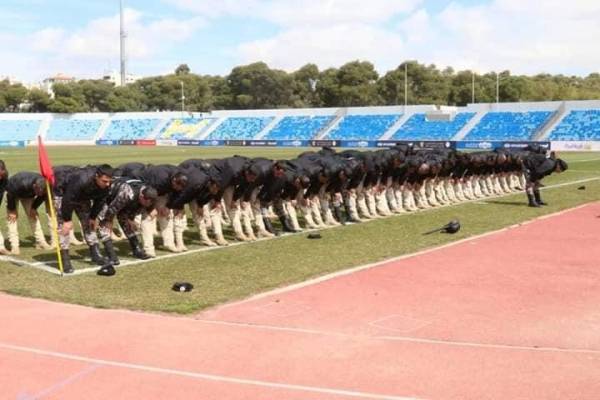 نشامى قوات الدرك يؤدون صلاة الجمعة في إستاد عمان الدولي - صور
