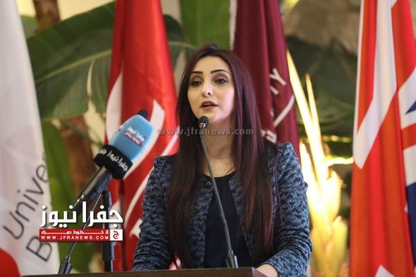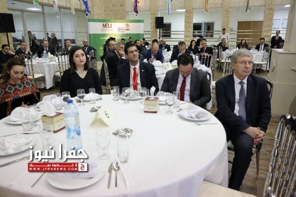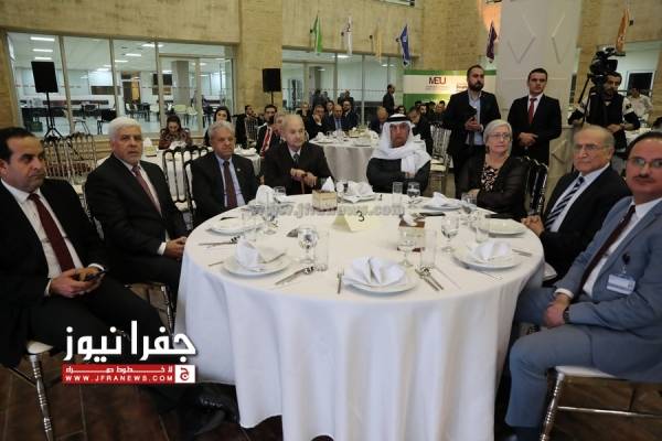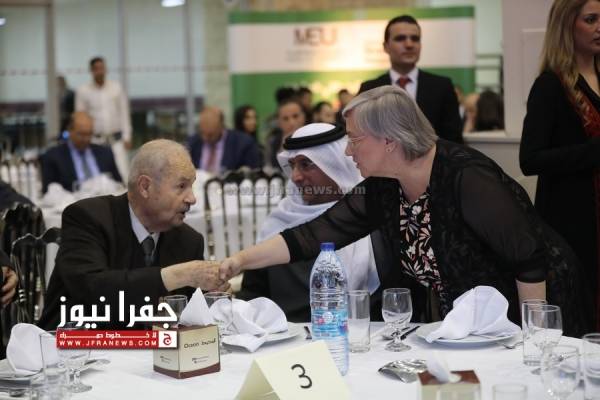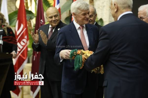 وفي ختام الفعالية ، كرّم رئيس مجلس أمناء الجامعة يعقوب ناصر الدين السفير البريطاني بـ " سجادة تراثبة " صناعة يدوية .