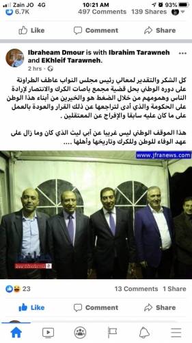 وقال نشطاء على وسائل التواصل الاجتماعي، ان ما قام به رئيس مجلس النواب، ليس غريبا عليه الذي كان ومازال وفيا للوطن والكرك واهلها وتاريخها .