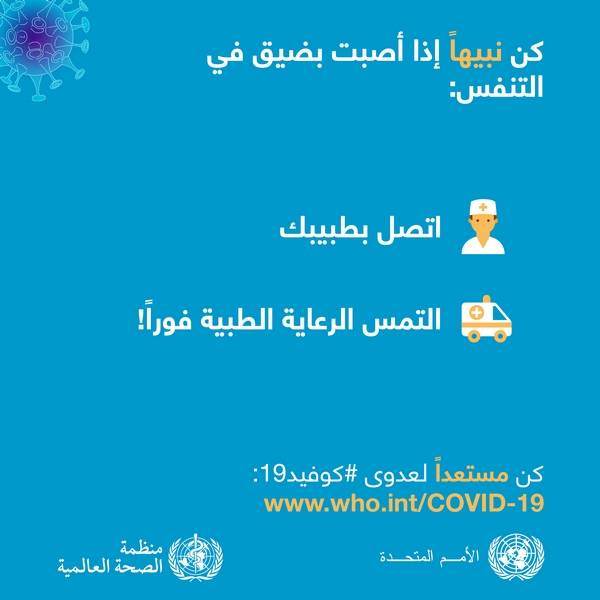 احرص على متابعة آخر المستجدات بشأن مرض كوفيد-19. واتبع النصائح التي يقدمها لك مقدم الرعاية الصحية وتلك الصادرة عن سلطات الصحة العامة المحلية والوطنية أو عن رب عملك بشأن أساليب حماية نفسك والآخرين من الإصابة بعدوى كوفيد-19.