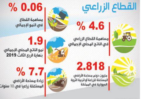 والاخطر ان المساحة المستغلة للزراعة أو الثروة الحيوانية في المملكة ما نسبته 3 % من إجمالي مساحة المملكة البالغ 89.342 مليون دونم (89.342 ألف كم مربع .