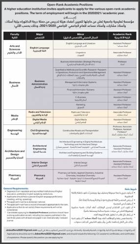 وظائف شاغرة لحملة درجة الدكتوراه في مؤسسة تعليمية جامعية
