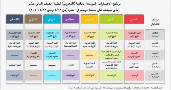 إعلان برنامج الامتحانات التجريبية للتوجيهي