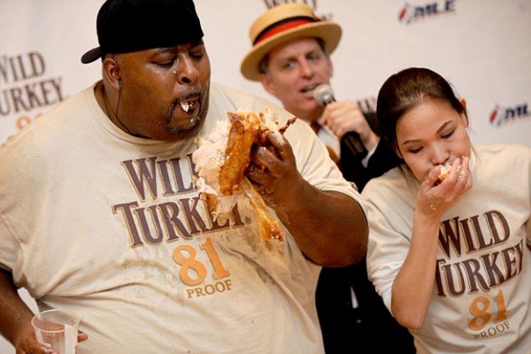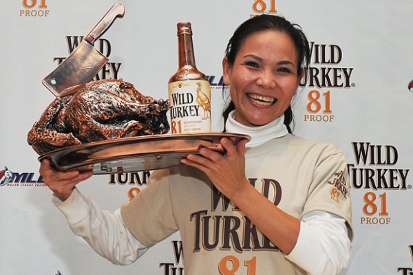 جفرا نيوز- تمكنت سيدة امريكية من التهام ديك بوزن أكثر من 2.3 كيلو جرامات خلال 10 دقائق في مسابقة أقيمت في مدينة نيويورك متفوقه على 6 أفراد .