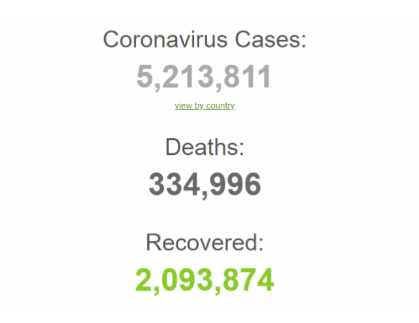 وأشار إلى أن عدد الإصابات الإجمالي بفيروس كورونا بلغ 5.213.811 حالة عالميا، فيما بلغ عدد الوفيات 334.996 حالة.