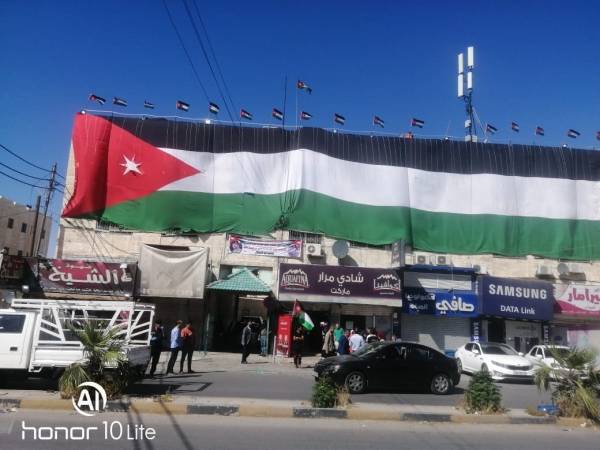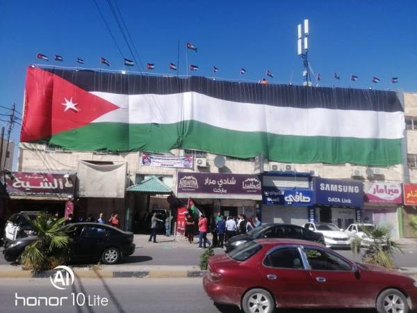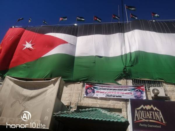 واقتصر الاحتفال على تزيين مبنى اللواء بالعلم الاردني بطول نحو ٣٠ مترا وإطلاق نحو ألف بالون تحمل الوان العلم