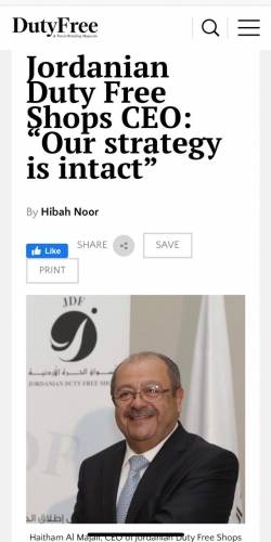وفي ختام المقابلة، شكر المجالي المجلة على اهتمامها بتسليط الضوء على الأردن، وتأثر المملكة بجائحة (كوفيد 19)، من خلال شركة الأسواق الحرة الأردنية، مقدراً لها اهتمامها بالشان والتجربة الاردنية الناجحة في مواجهة الوباء.