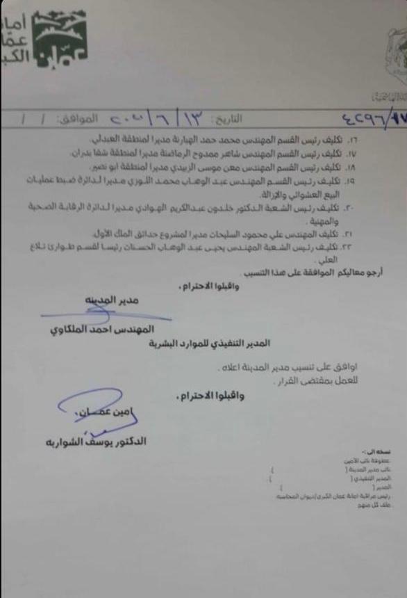 "بالاسماء".. تغييرات وتنقلات شاملة في أمانة عمان