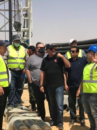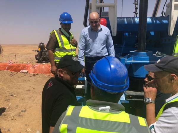 واستمع وزير المياه والري من نائب امين عام سلطة المياه فراس العزام عن سير الاعمال وعمليات الحفر التي تنفذها الحفارات العملاقة التي استقدمتها وزارة المياه والري مؤخرا ( Rotary) والتي تستطيع الحفر لاعماق كبيرة تصل الى (1500 متر) و(1200) متر لتوفير مصادر مائية مستدامة بحيث تستطيع تأمين المشاريع المنوي تنفيذها في هذه المناطق بأحتياجاتها وكذلك تنمية هذه المناطق وتطوير الخدمات و الاستثمارات في المشاريع الزراعية و الصناعية و السياحية والترويج لها و تسويقها محلياً و عالمياً وتنميتها أقتصادياً و اجتماعياً وسياحيا .