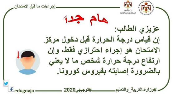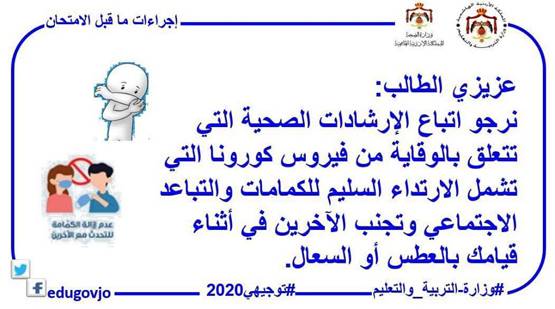 التربية تعلن عن البروتوكول الصحي لامتحان التوجيهي, والقبيلات توضح لجفرا حول "ورقة الامتحان وتطبيق أمان"