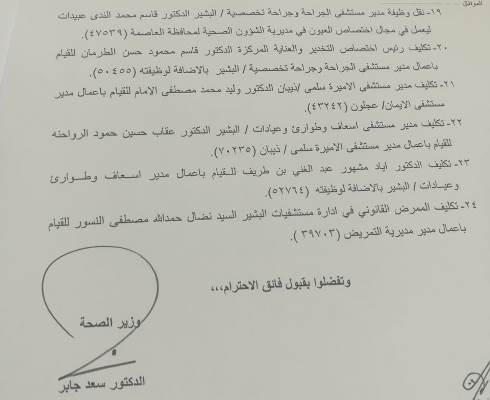جفرا نيوز - أجرى وزير الصحة الدكتور سعد جابر تنقلات ادارية واسعة في الوزارة.