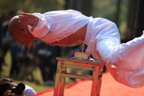 وخلال فعالية شهدتها مدينة نانينج بالصين، وقف لي شين (47 عامًا) الذي يزيد وزنه عن 60 كيلوجرامًا، برأسه على مسمار حديدي في حالة من التوازن والثبات لمدة 10 ثوان، حسب صحيفة “ذا صن” البريطانية.