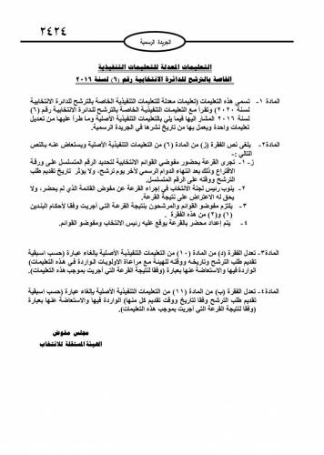تعديل تعليمات الترشح للانتخابات (وثيقة)