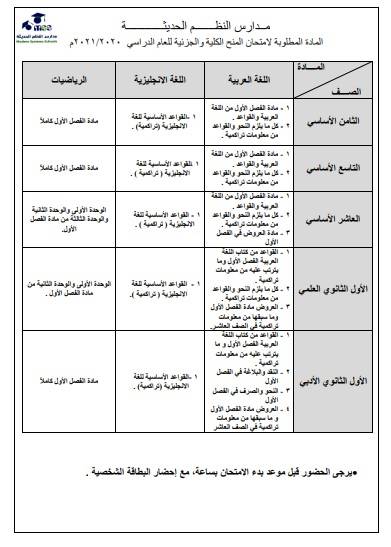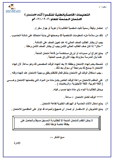 امتحان المنحة الدراسية للعام 2020-2021 في مدارس النظم الحديثة