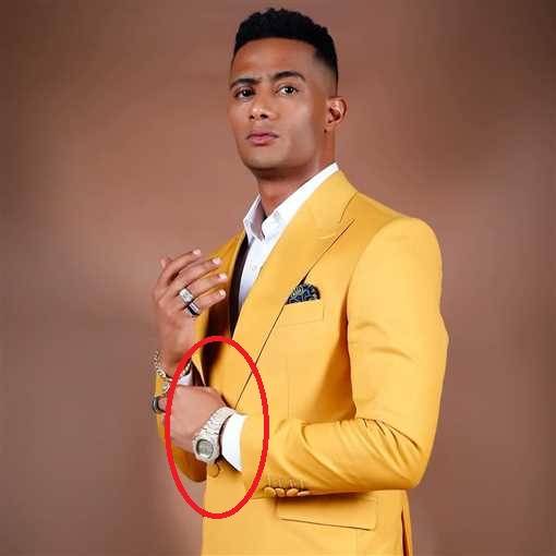 بالصورة..محمد رمضان يرتدي ساعة تضم أكثر من 1000 ماسة
