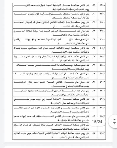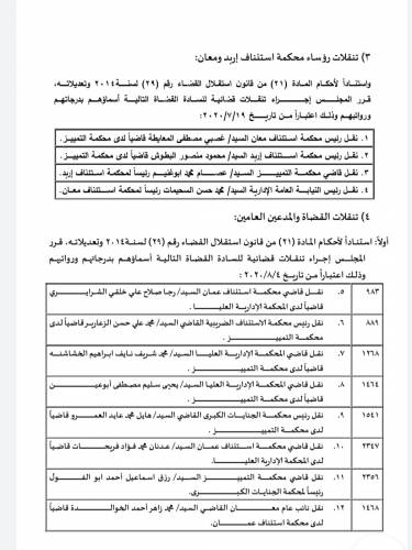 جفرا نيوز - قرر المجلس القضائي اليوم اجراء تنقلات لرؤساء محاكم وقضاة ومدعين عامين