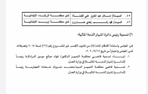 تنقلات لرؤساء محاكم وقضاة ومدعين عامين ..أسماء