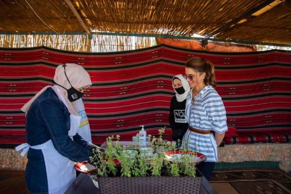 وفي بيت ريف الينابيع، اطلعت جلالتها على الحديقة وشاركت في عمل الزعتر، واستمعت الى شرح من المدير التنفيذي لمنصة "سواح" سحر برقاوي حول الدور الذي تقوم به المنصة بهدف تسليط الضوء على السياحة المستدامة، حيث توفر المنصة والتطبيق الالكتروني المجال لحجز التجارب السياحية وربط المسافرين بتجارب تراثية متاحة من مزودي خدمات تجارب سياحية مختلفة في الأردن، ويوفر لأهل المجتمعات المحلية فرصة الحصول على مصدر جديد للدخل.