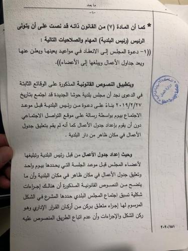 كما ان هذا القرار مشوبا بعيب مخالفة قانون البلديات المعمول به وذلك لعقد جلسة طارئة لاحالة المستدعي على التقاعد على غير الشكل الذي رسمه القانون ، ولهذا ايدت المحكمة الادارية العليا القرار المتضمن الغاء القرار باحالة المستدعي على التقاعد لا سيما في ظل صدور قرار من هيئة النزاهة ومكافحة الفساد بحماية المستدعي من القرارات الادارية على اثر شهادته لديها .