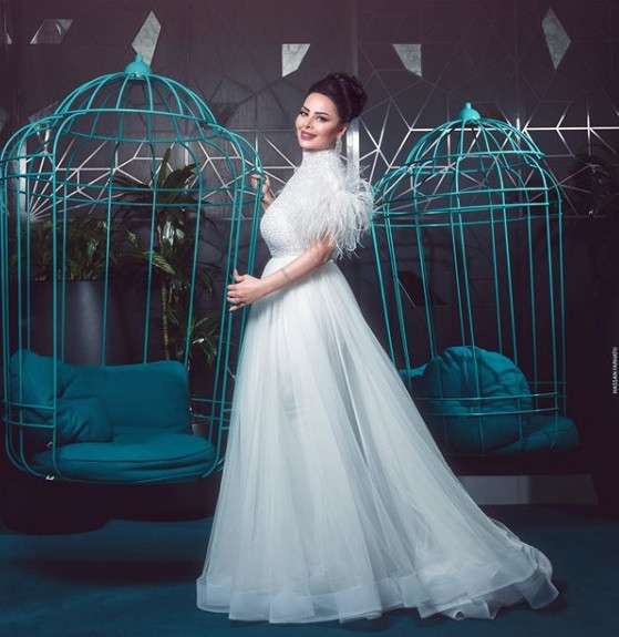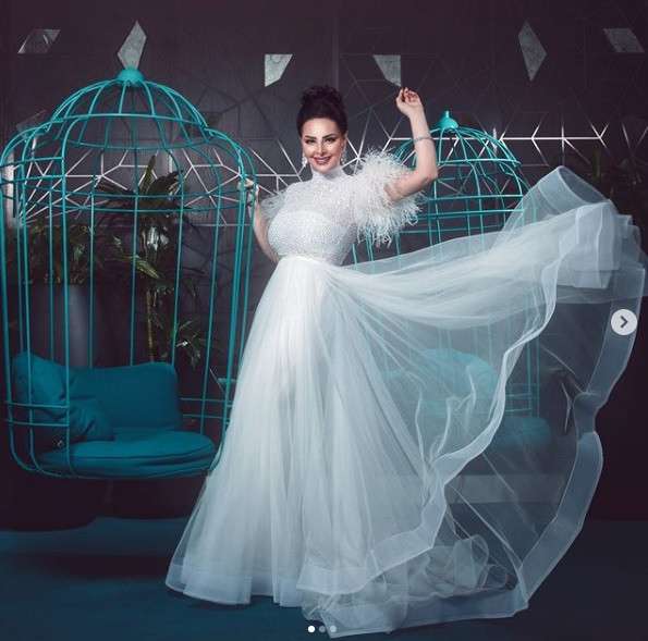 الفنانة الأردنية تألقت في حفل زفافها بفستان زفاف أبيض أنيق، وأطلت بقصة شعر مختلفة، ومكياج كثيف، ووضعت تاج أبيض كبير على رأسها مع طرحة زفاف طويلة.