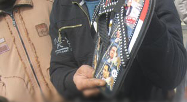 بالصور..شباشب صينية عليها صور مبارك والعادلي تباع امام اكاديمية الشرطة