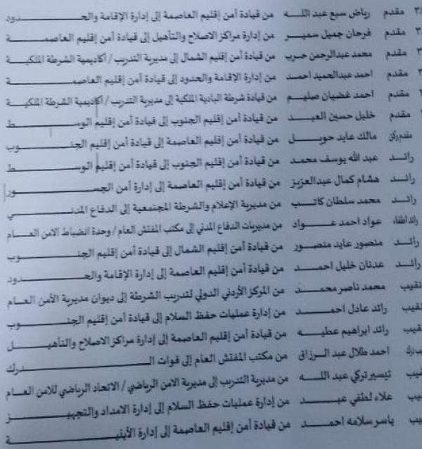 الحواتمة يجري تنقلات في مديرية الأمن العام - أسماء