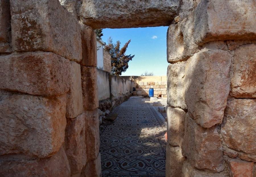 جفرا نيوز - يجثو طه الخزاعلة وزميله السوري وليد العوض على ركبتيهما منهمكين في استعادة رونق أرضية من الفسيفساء بيزنطية في كنيسة من القرن السابع في المفرق/رحاب شمالي الأردن.