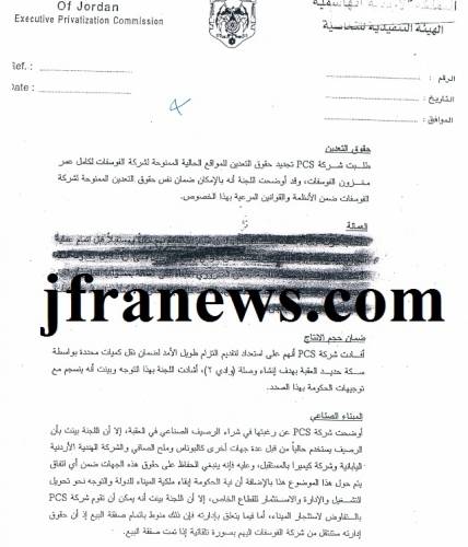 ليس من باب المحاباة بل من باب كشف الحقيقة قامت "جفرانيوز" بمتابعة ملف شركة الفوسفات منذ ان تمت خصخصتها فعندها كانت شركة الفوسفات قائمة على الديون وعلى القروض البنكية وكانت غير قادرة على دفع رواتب موظفيها الشهرية الى ان تم الاتفاق مع شركة "كامل هولدنغ ليميتد" الذراع الاستثماري لسلطنة بروناي لشراء 37% من شركة الفوسفات وكان قد وقع على اتفاقية الخصخصة من جانب سلطنة بروناي وكيل وزارة المالية في بروناي الحاج امين عبدالله ووزير النفط والطاقة مع الجانب الاردنية، ومنذ ذلك التأريخ بدأت شركة الفوسفات عهد النجاح والتقدم والتطور الى ان اصبحت رائدة في هذا القطاع ليس فقط في الاردن بل في كافة انحاء الوطن العربي.