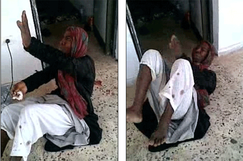 جفرا نيوز-صور وحشية اخذت من فيديو ارسل الى جريدة الديلي ميل البريطانية ويظهر الاساليب الوحشية التي يستعملها ثوار ليبيا من ضرب وصعق بالكوابل الكهربائية وهي نفس الاساليب التي كانت تستعمل في عهد القذافي .. قيادة الثوار كما ذكر احد القادة - محمد الدياكة - تبرر ذلك وتقول بانها تريد ان تعرف بالضبط من الذي قام بالاعتداء على النساء واغتصابهن في عهد القذافي بالاضافة الى معرفة اصحاب جرائم التخريب وتدمير البلاد في فنرة الثورة ضد القذافي ..