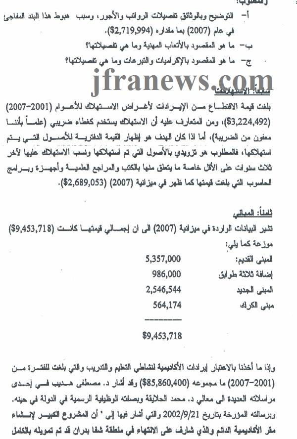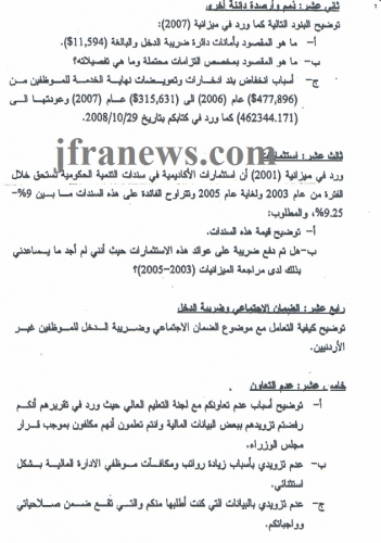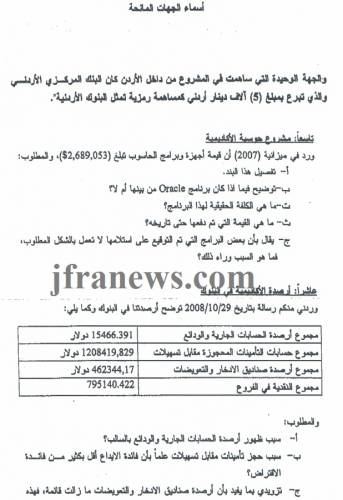 وهذا وتشير استفسارات الدكتور الطراونة الى وجود شبهات فساد في هذه الميزانيات تاركين للقارئ الكريم الاطلاع على الوثائق للتأكد من الخلل الذي يشوب هذه الميزانيات .