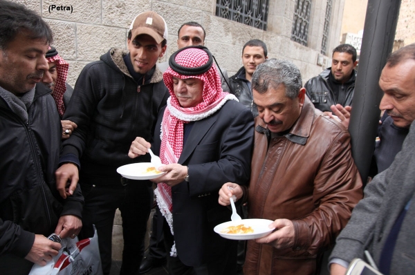 عون الخصاونة تجول في وسط البلد مساء السبت مع صقيع المنخفض الجوي والناطق الرسمي ، بينما الشوارع شبه خالية اكل الكنافة ، وتحدث مع بضع اشخاص بكلمات قليلة ، ثم هز رأسة امام كاميرا التلفزيون ، وعاد إلى الدوار الرابع ، فهل يجرو على زيارة مدن الوسط والجنوب ؟