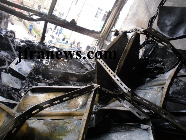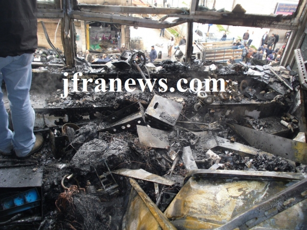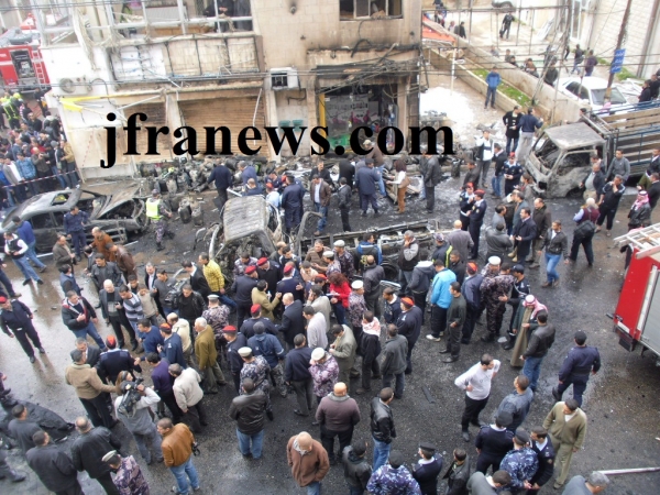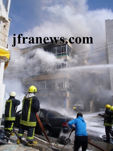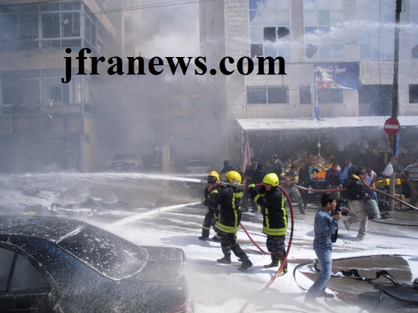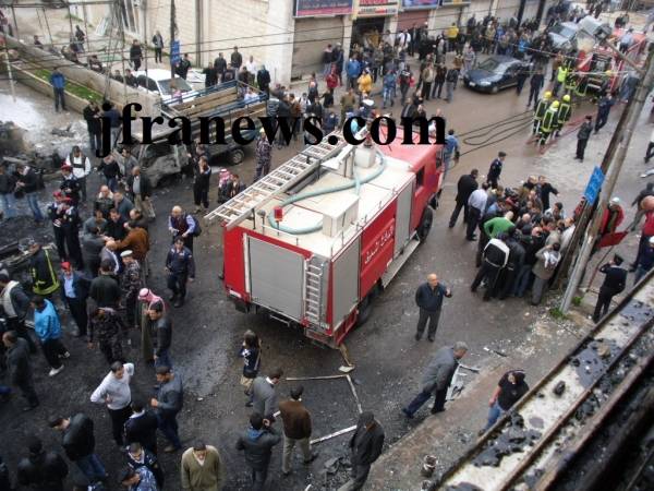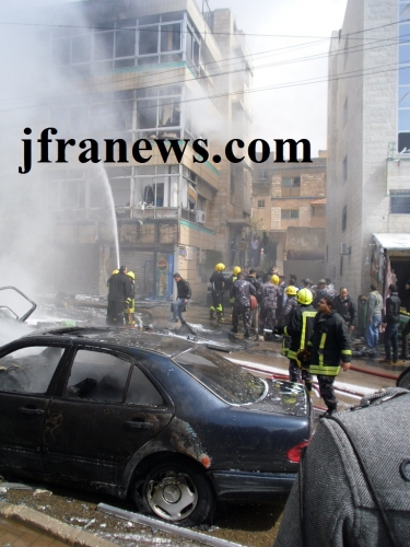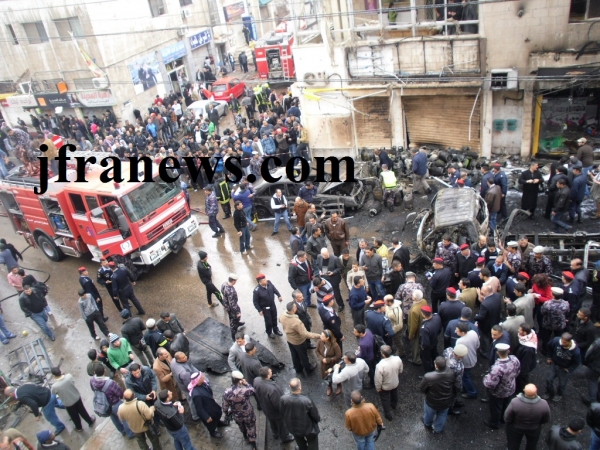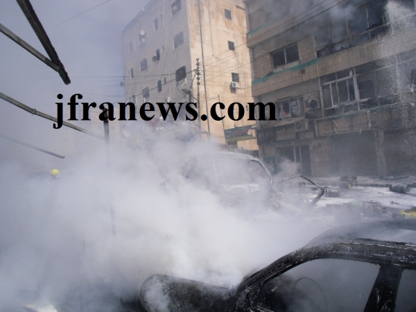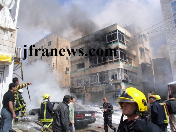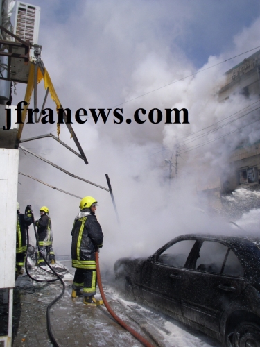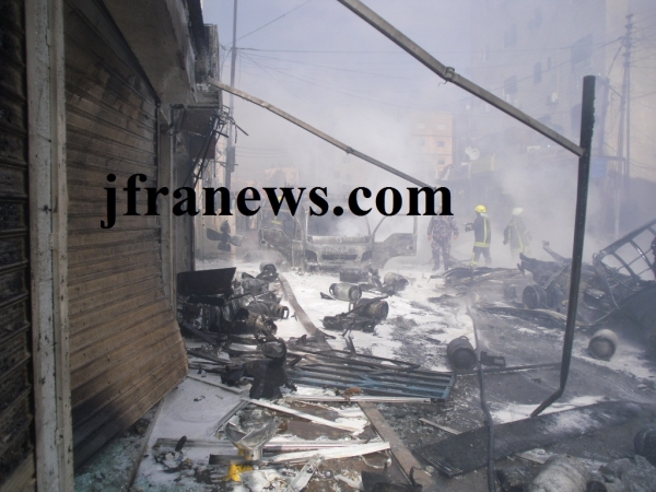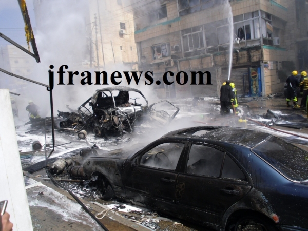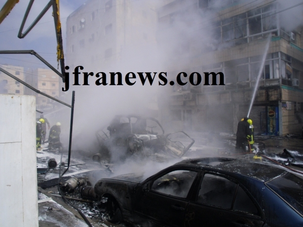 وقال الناطق الرسمي للدفاع المدني العقيد فريد الشرع إن الحادث إدى إلى إصابة4 أشخاص بضيق تنفس واشتعال النار بحوالي 50 سيارة وإلحاق أضرار بثلاثة مبان وبعض المحلات التجارية في محيط الحريق