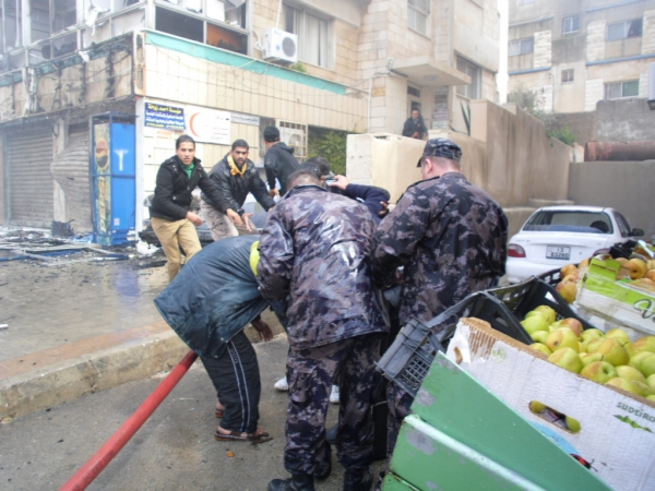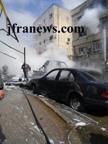 وقال بيان صادر عن المكتب الاعلامي في المديرية العامة للدفاع المدني: تعاملت كوادر الدفاع المدني في مديرية دفاع مدني إنقاذ وإسناد الوسط وبإسناد من مديرية دفاع مدني غرب عمان مع حادث اشتعال مركبة مخصصة لنقل اسطوانات الغاز في منطقة دوار المدينة الرياضية محملة بـحوالي (50) اسطوانة ممتلئة نتج عنه اشتعال في بعض الاسطوانات وتطايرها, الأمر الذي أدى الى احتراق ستة مركبات كانت قريبة من الموقع وامتداد السنة اللهب الى ثلاثة مباني ومحال تجارية واقعة بالقرب من منطقة الحريق حيث قامت كوادر الدفاع المدني بالتعامل مع الحادث بكل كفاءة واقتدار وإخماد الحريق و السيطرة عليه ومنع انتشاره الى باقي أرجاء المنطقة وقد نتج عن الحادث إصابة أربعة أشخاص بضيق في التنفس اثر استنشاقهم الغازات المنبعثة عن الحريق حيث قامت فرق الإسعاف بتقديم الإسعافات الأولية اللازمة لهم في موقع الحادث وحالتهم العامة متوسطة.