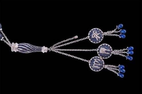 وزينت الخرزات البيضاوية بالياقوت الأزرق النادر فيما استخدمت حبات الماس ذات النقاوة الخالصة لنقش أسماء الله الحسنى على الخرزات الـ99.